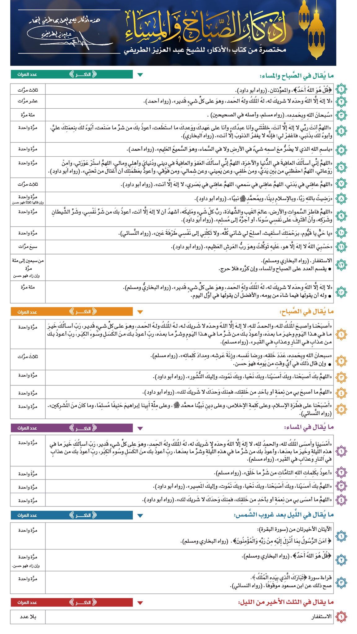 O Xrhsths قناة زدني علم ا Sto Twitter للنشر أذكار الصباح والمساء مختصر من كتاب الأذكار للشيخ عبدالعزيز الطريفي Abdulaziztarefe Pdf Https T Co Roy43bxkt5 Https T Co 6hszvvcaj8