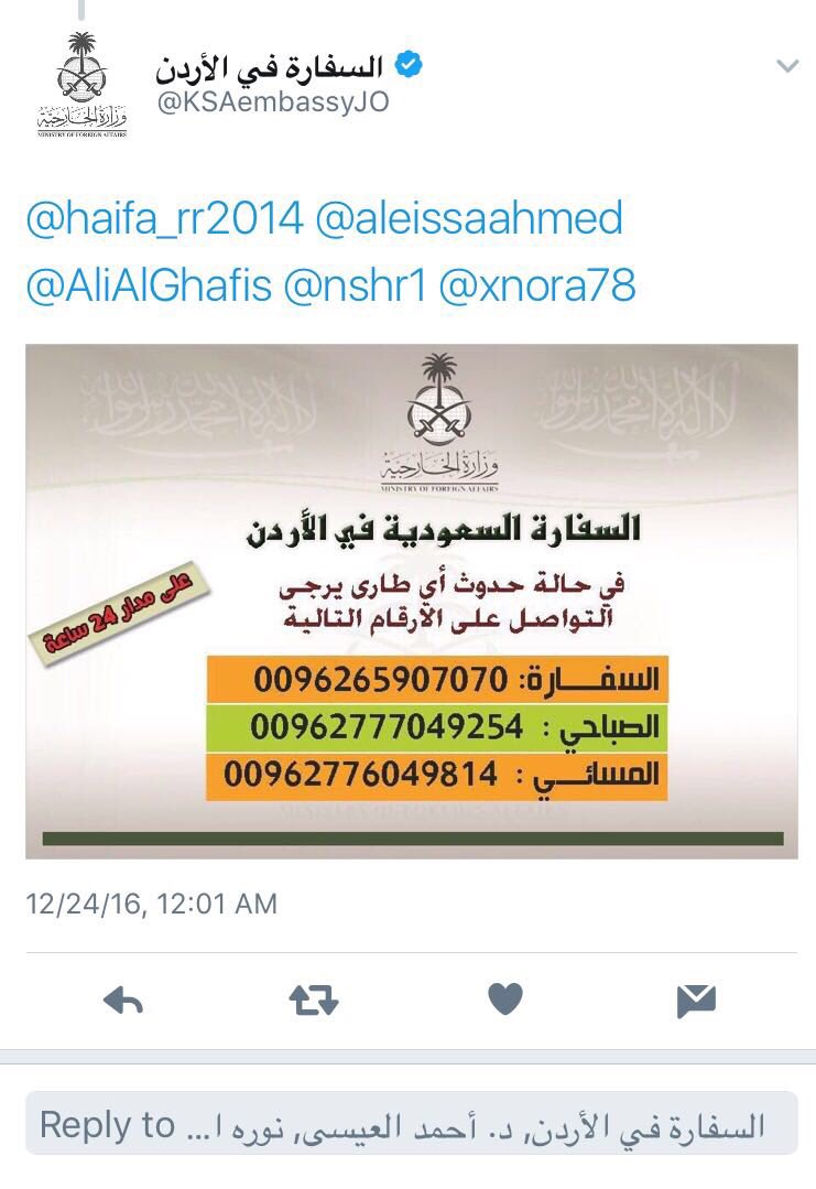 السفارة في الأردن On Twitter نأمل التواصل مع أرقام الطوارئ في السفارة قسم شؤون السعوديين