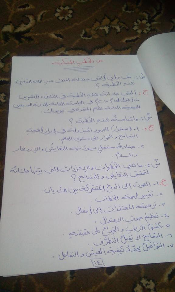 بالصور شرح درس من الخطب الملكية لمادة اللغة العربية مشترك للصف الأول الثانوي الفصل الثاني منتديات صقر الجنوب
