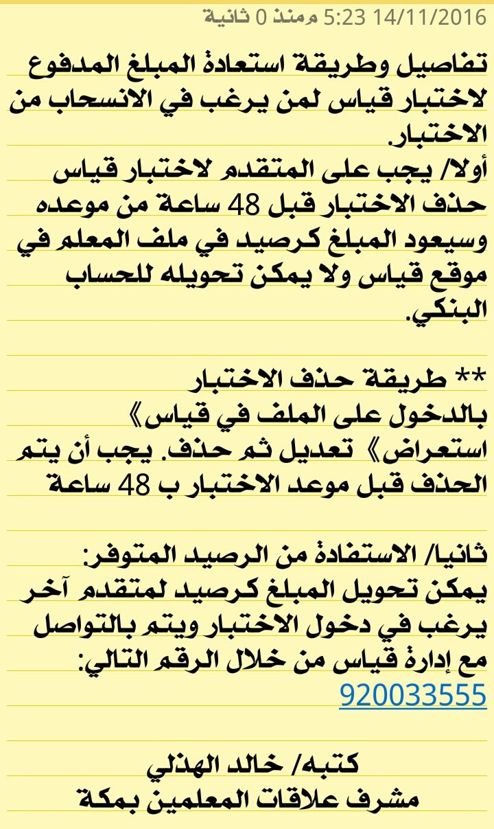 خالد الياسي الهذلي Twitterren طريقة استعادة المبلغ المدفوع لاختبار قياس لمن يرغب في الانسحاب من الاختبار بالتفصيل هام يجب حذف الاختبار قبل 48 ساعة من موعد الاختبار Https T Co G8s3wspoyj