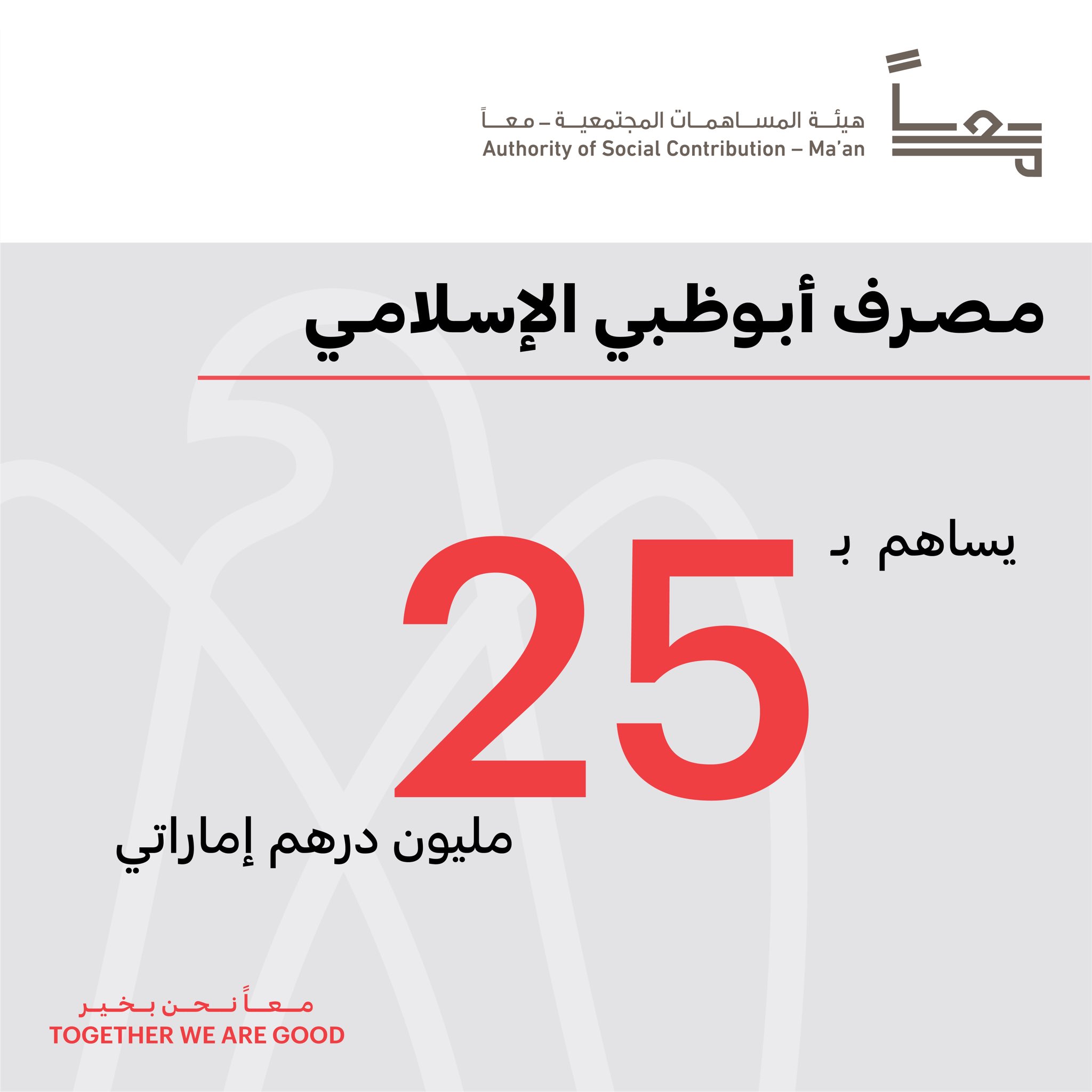 مكتب أبوظبي الإعلامي On Twitter مصرف أبوظبي الإسلامي يساهم بمبلغ 25 مليون درهم لصالح برنامج معا كلنا بخير الذي أطلقته هيئة المساهمات المجتمعية معا لاستقبال المساهمات من الأفراد والجهات والشركات تعزيرا لتضامن