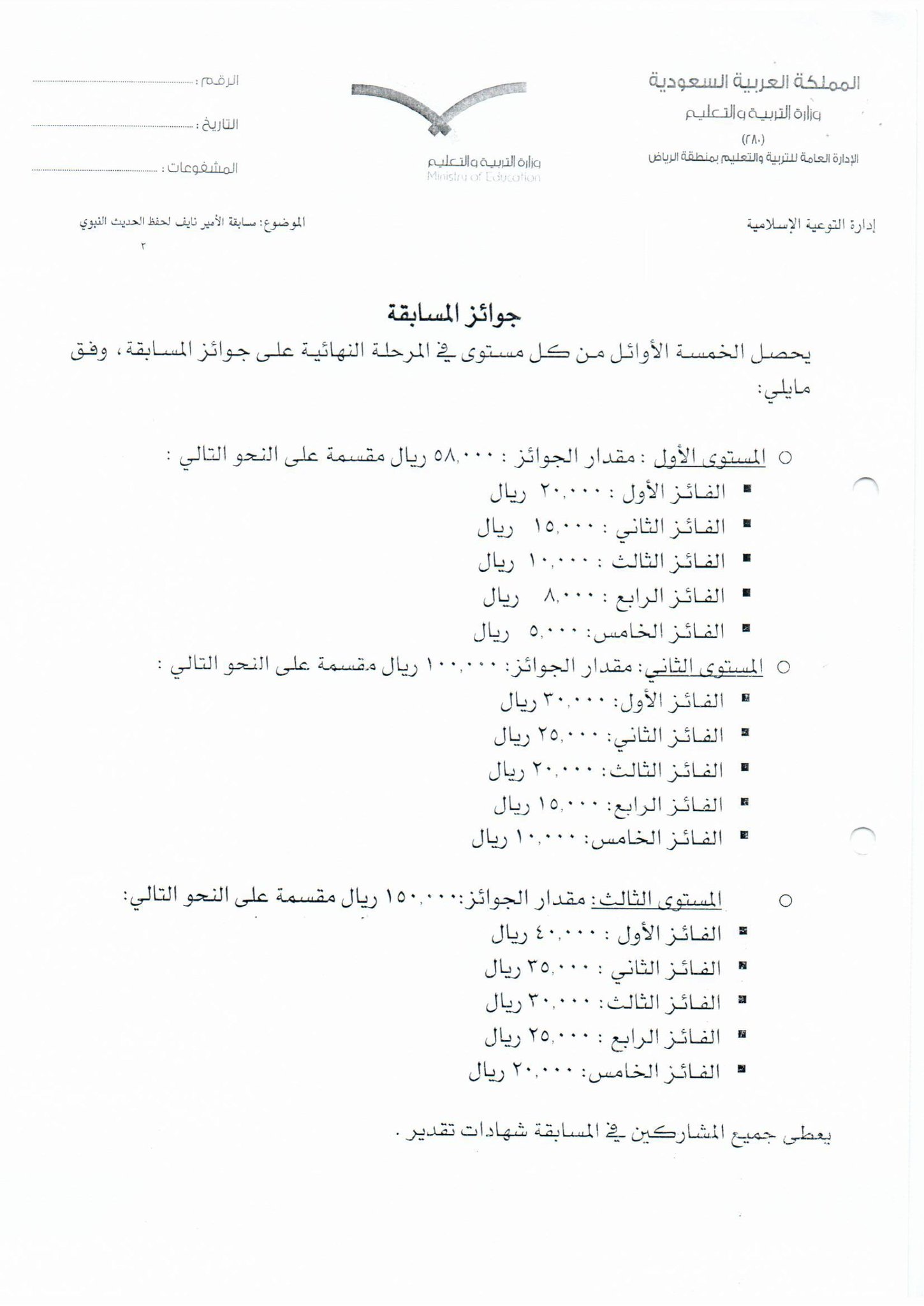 توعية Na Twitteru تعميم مسابقة الأمير نايف لحفظ الحديث النبوي في دورتها الحادية عشرة 1436 هـ التوعية الإسلامية Http T Co Stypih1dzo