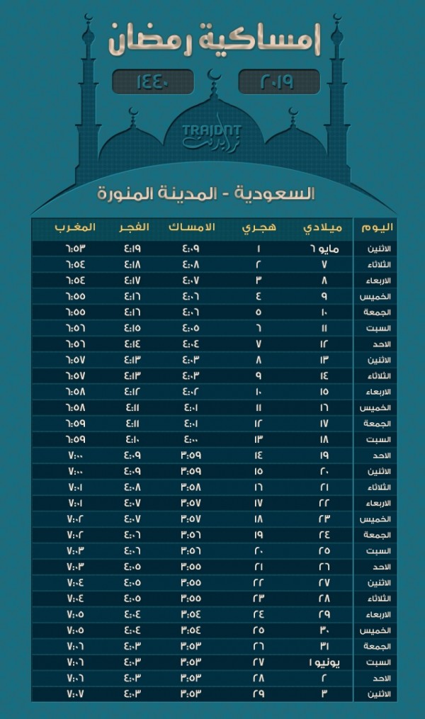 امساكية رمضان 1440 المدينة المنورة حلول ويب