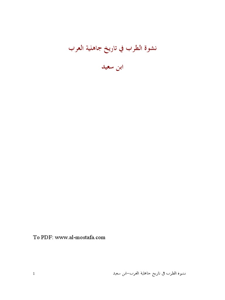 تحميل وقراءة كتاب نشوة الطرب في تاريخ جاهلية العرب تأليف ابن سعيد الأندلسي Pdf مجانا